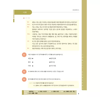 《最權威的延世大學韓國語》教材的內容,不僅包括以不同韓語學習階段所要求的內容為主題的會話,以及對語彙和文法的系統性訓練,更包括為實踐聽、說、讀、寫能力之培養發展而編寫的多樣練習題、情境活動等,是一套多元、綜合性的教材。本系列教材以學生為學習中心,以其感興趣的主題和情境為基礎,完成各種語言溝通的任務,進而精熟韓語。
