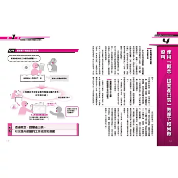 本書中將介紹具體的帶人方法,譬如部屬在製作資料遇到挫折時,上司不能放任他一個人解決,應該親自示範讓部屬知道如何做才是對的,以身作則使其進步,反而能讓部屬盡早上手。做這些事情時,或許你會覺得很麻煩,事實上,這樣做反而能使上司和部屬都能更快速完成工作,著手進行下個工作,而原本手忙腳亂的部屬也會在不知不覺中,成長為能獨立作業、值得信賴的部屬。