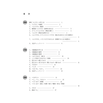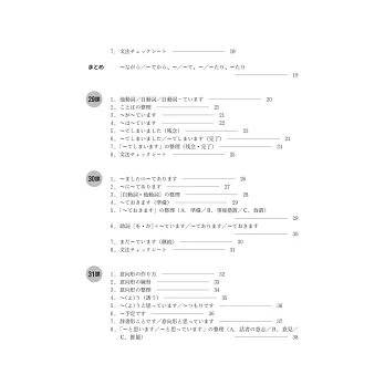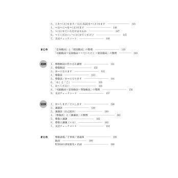 統整初級重點句型及詞彙,幫助理解正確用法,培養書寫能力。每課課後均附有「文法チェックシート」,便於立即檢測學習結果。