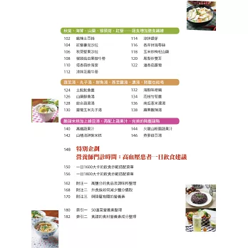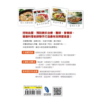 很感謝晨星出版社此次邀集了營養師和名廚師來聯手創作這本降血壓的食譜書,並期盼藉由此本衛教食譜,能夠幫助高血壓病患及其家屬,從生活飲食習慣方面來對血壓進行更有效、更容易地控制,並進而改善全民的健康,同時也能逐步地減輕政府醫療的負擔。