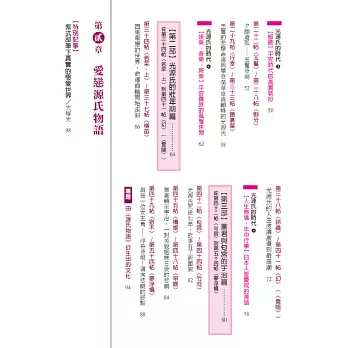 登場人物相關圖、帖名由來、名詞解釋、豪華殿造格局一覽、貴族服飾裝扮展示、生活風俗小知識……全面到位,帶你輕鬆瀏覽《源氏物語》54帖故事!