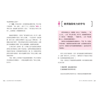 作者擅用淺顯的文字說明,並舉出大量實例示範改善方式,實用到讓人忍不住把書常置辦公桌,如同字典一般。