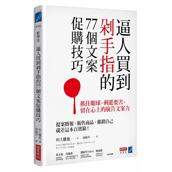 坊間的文案書其實不少,無論是自歐美引進,或是本國作者的論述,大多在談理論,或是以案例介紹為主。本書堪稱是一本偏重於傳授廣告文案實務技巧的教戰手冊。─鄭緯筌Vista/臺灣電子商務創業聯誼會理事長