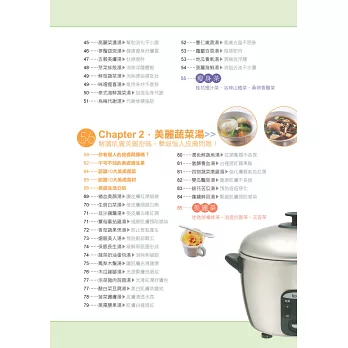 想擁有美好身材與健康真的這麼難嗎?我想原因在於現代人多數為外食者,擔憂外面賣的那些油膩高熱量食物壞了自己美好身材,因此若能有一本兼顧營養、低卡路里又方便煮的食譜教大家做,那真是太好了!這就是這本書出版的動力,此書希望讀者能善用鍋具,讓你走到哪裡都不用擔心吃的問題,且能輕鬆讓自己「享瘦」健康美味的飲食,而不必虐待自己。希望藉由此書的出版讓大家都能擁有健康滿意的身材,但記得也必須做適度的運動喔,終究健康是任何物質所無法取代的。當然更期望大家不吝指教。