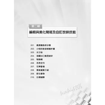 有鑑於此,本會為了建立使用者的學習信心和提高學習的成效,特聘請陳美玲老師親自解題並精心規劃撰寫『PowerPoint 2016實力養成暨評量解題秘笈』,期能以最完整最詳細的說明,一步一步引導您涉獵整個學習過程,而不致無所適從。