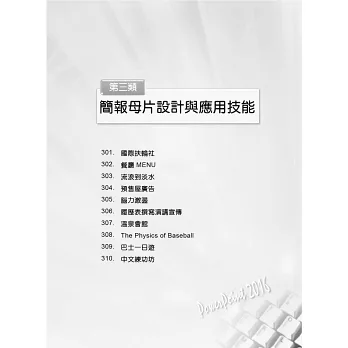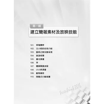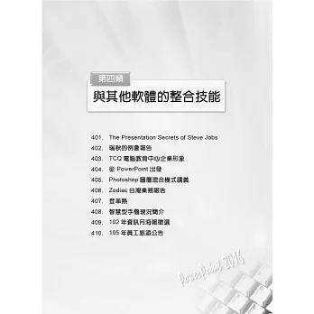 『PowerPoint 2016實力養成暨評量』是一本以實務應用為導向設計的試題題庫,內容包含了各行各業實例演練的應用。對於一般使用者而言,要能對PowerPoint功能全面融會貫通並輕易解出每一道試題,似乎不是一件容易的事;坊間的參考書大多著重於基本功能的介紹,然要從中學得使用技巧,實非易事。