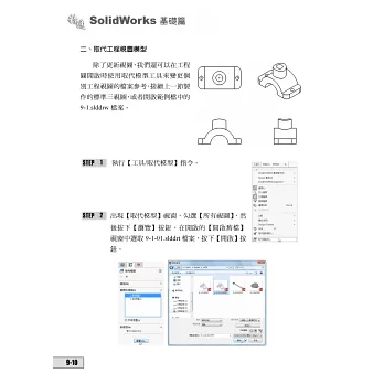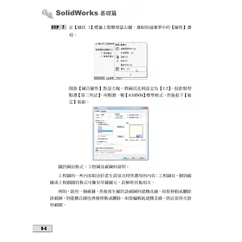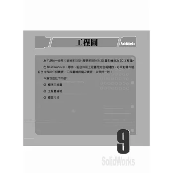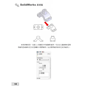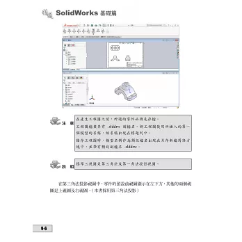 本書精選SolidWorks重要基礎操作指令,透過實例引導分別講述SolidWorks的基礎應用、伸長與除料、旋轉、複製、參考平面、薄殼與肋材、掃出、疊層拉伸、工程圖、組合件、鈑金與塑模等功能。將重要的應用技巧結合到實際教學中,使讀者可以循序漸進、隨學隨用、邊看邊做,便於鞏固所學的知識,在工作與學習中能快速得到實踐。