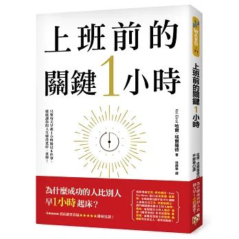 《上班前的關鍵1小時》帶給你必要的時間與動力去創造你想要的成就──無論你有多麼忙碌。我強力推薦你閱讀這本書!──《心靈雞湯:大學之愛》作者/詹姆斯‧馬林恰克