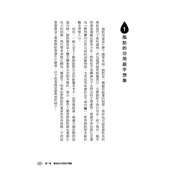 本書透過簡潔但不失精準的章節編排與介紹,娓娓和大家道來,那我們喜歡的、討厭的、和我們一起度過歡笑也度過淚水的脂肪好朋友……相信等你看完這本書,你對這位「敵人」,一定會有一番完全不同的見解!