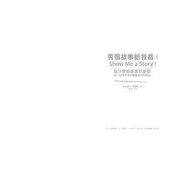 讀完這本書後,發現接續的相關閱讀永遠讀不完。我們經常說每個朋友有如一本書,我們讀這本《秀個故事給我看!》有如認識了二十多位在圖畫書領域裡專精的朋友。而他們各自其他的創作,有如老樹幹上的粗細大小的分枝,讓我們可以順著這些脈絡,繼續發掘已知、未知的閱讀。所以我們唯有認知自己的不足,才能不斷地創新與更新。而故事往往不是只有故事,聽故事和說故事的人都有許多背後層層疊疊的人生經歷,而故事所以吸引我們,是因為故事讓我們更有能力決定未來的人生。