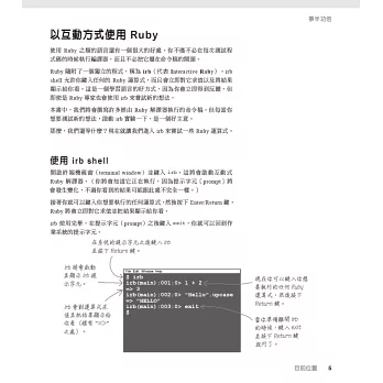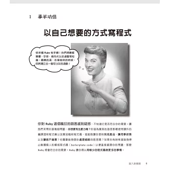 Ruby語言怎麼那麼紅?它適合你嗎?嗯,問問你自己:你是否厭倦了其他語言中額外的宣告、關鍵字以及編譯步驟?你想成為一個更有生產力的程式員?那麼你會愛上Ruby。有了這個獨特的動手學習經驗,你將瞭解Ruby是如何替你處理所有這些細節,使得你輕易就能享受「以較少的程式碼做更多事情」的樂趣。