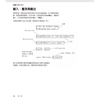 『《深入淺出Ruby》以符合語言核心精神的風格來教導Ruby:直接、幽默以及適度的奇想。本書的視覺化方式非常適合那些厭倦了枯燥、無聊技術書籍的讀者。』 —Peter Cooper 《Beginning Ruby》作者