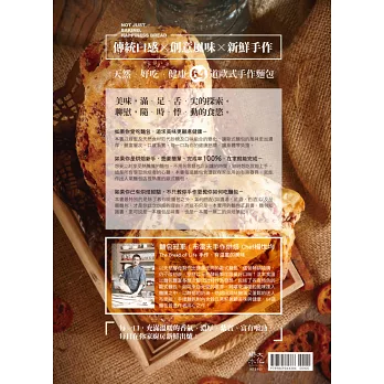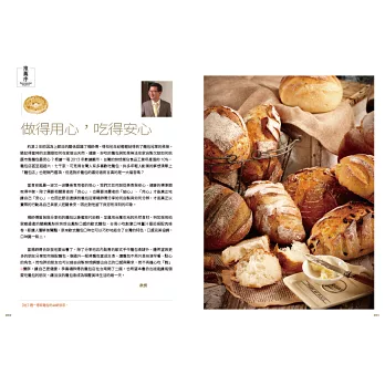 很多人也因此對我的手作麵包感到好奇,如何零添加化學藥劑卻仍讓麵包兼顧美味、健康、營養,還散發出淡淡的麥香味?! 就請你翻開這本書找找我多年的烘焙秘訣吧,也許有人仍覺得讀烘焙書跟實際手作仍是兩回事,但只要你開始動手,終會從不斷烘焙的體驗中找到屬於自己的口感,而那種好吃的味道將令你洋溢出無法形容的滿足與幸福感,我會這麼說,是因為我也從這樣的過程中一步一步地走過來。