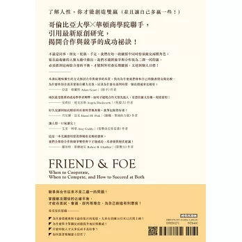 不論是同事、朋友、配偶、手足,我們在每一段關係中同時扮演敵友兩種角色。要在最複雜的人類互動中勝出,我們不能將競爭與合作視為二擇一的問題,必須抓到這兩股力量的平衡,才能對外培養長期關係,又達到個人目標。