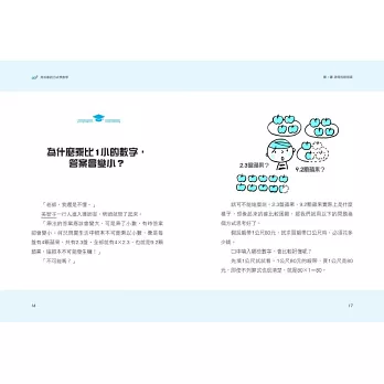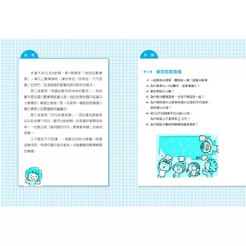 本書以10~15分鐘的短篇故事加大量插畫,舉凡孩子上數學課讓你感到「很奇怪、聽不懂」的地方,在本書都會告訴你為什麼,並如何解決,透過「情境」讓孩子快速吸收並理解這些有趣的數學觀念。本書內容皆為國小三年級至六年級容易產生疑問的數學習題,在學習的同時,也訓練了孩子的邏輯力與思考力。