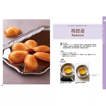 ◇收錄「自製奶油」、「用植物性鮮奶油擠花和抹面」和「瑪德蕾變化款」等同場加映單元,學得更多更好應用。
