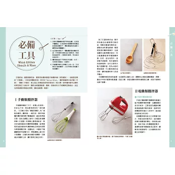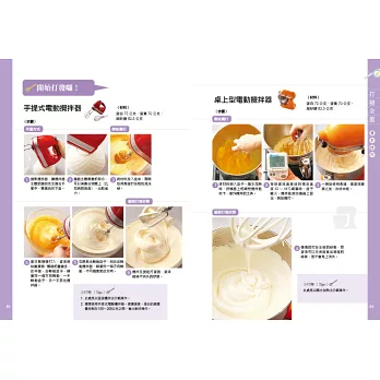 ◇同時教授「手拿攪拌棒」、「手提式」電動攪拌器和「桌上型」電動攪拌器操作,無論使用哪一種攪拌器,打發都OK!