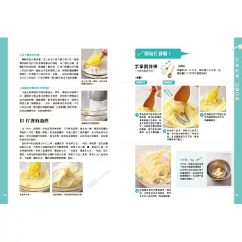 新手在製作點心時,對於「打發」常感到疑問,甚至連選擇工具都很困擾。擁有多年烘焙經驗的王安琪老師,特別針對烘焙新手和對打發不熟悉的讀者,設計了一系列以「打發」為主題的課程。以淺顯的文字解說,並且把操作過程中的關鍵步驟圖放大,更讀者看得更清楚。書中同時以「手拿攪拌棒」、「手提式」和「桌上型」電動攪拌器示範,因此不論自家有哪種機器,都能順利學習。