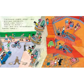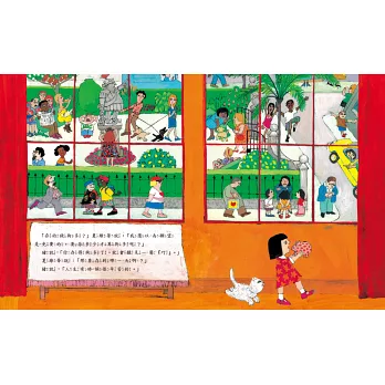 畫面以多視角方式呈現,彷彿同時從多元角度觀察世界,升高觀點向下俯瞰,使讀者的視野更遼闊周全,擴張對故事涵意的理解。圖畫描繪的人生比文字敘述的更豐富:有人玩樂,有人工作,有人迷路,有人吵架,有人偷竊,有人分享,有人因為遛狗成了朋友,還有穿著紅心T恤的女人和拿著紅心提袋的男人一路發展出美好的結局。這本書裡有悲劇也有喜劇。夏綠蒂的人生只是其中之一。這可能也是她一開始就不在畫面正中央的原因。她的不幸,不是世界的全部;還好,這個世界比她以為的還要廣大、奇妙。她若明白這一點,或許將不會捆綁或陷溺於自己的遭遇,可以在寬廣的世界裡創造出新的可能性。