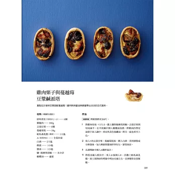 經過[①空烤塔皮]、[②填入內餡]、[③放上配料]、[④放上更多配料]四個步驟,