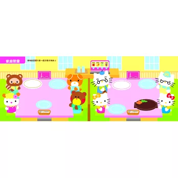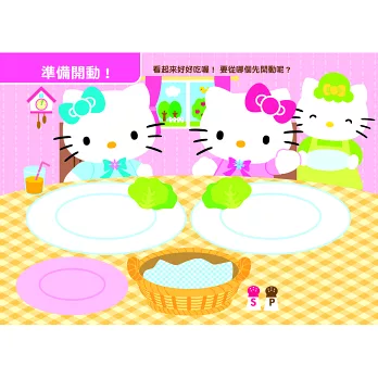 可重覆黏貼的貼紙繪本,以可愛的Hello Kitty為特色主題,規劃簡單又可愛的情境模式,讓最有人氣的Hello Kitty陪你一起貼貼紙!