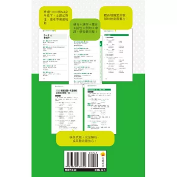 附上3回擬真的「模擬試題+完全解析」,考題精準,讓您在記憶單字後,能測驗自己的實力!