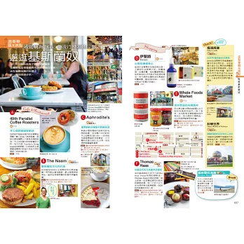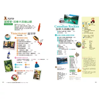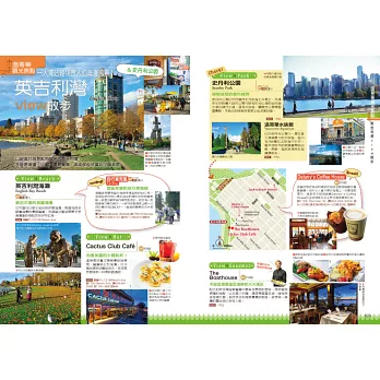 來到溫哥華一定要品嚐鮮美的鮭魚、龍蝦、生蠔等當地新鮮海鮮餐點,配上窗外的美麗夜景是一大享受。別忘了街道上的餐車美食,種類豐富的各國菜色,可以大大滿足挑剔的味蕾。溫哥華也是咖啡廳激戰區,林立著各種不同風格的咖啡廳,快跟著本書來一場咖啡廳巡禮吧!