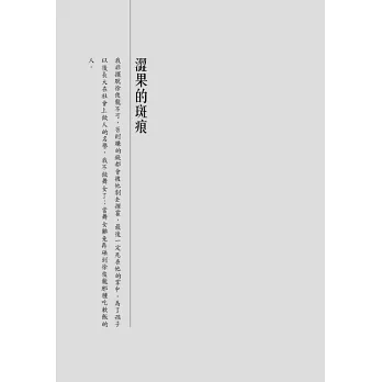 本書收錄有:〈澀果的斑痕〉、〈大都市〉、〈剪掉半邊像〉、〈父母親大人〉、〈初出閨門〉、〈老芋仔新蕃薯〉等六篇小說。
