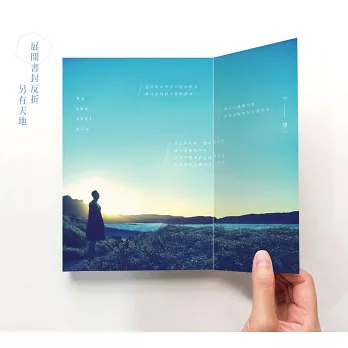 而反折的書封更是隱藏巧思,打開後,開展出被隱藏的寬闊視野,代表著「看不到不代表不存在」,別人眼中的缺陷,可以是你眼中的美好,不妨學著與負面情緒好好相處,然後再一起等待變好的可能。