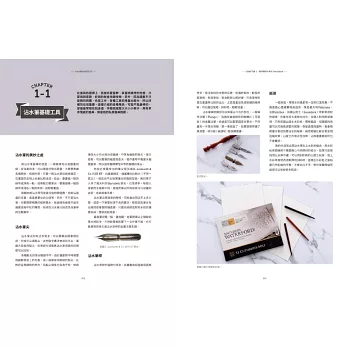 在這本書裡,將介紹我一直以來運用的沾水筆技巧,以及這些年累積的不同作品。共分為6章,裡頭除了許多各式各樣的練習,也會介紹發想過程與創作背後的趣話。