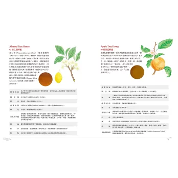提供63種蜂蜜品蜜表:依蜜源種類區分,領略蜂蜜的萬千滋味。