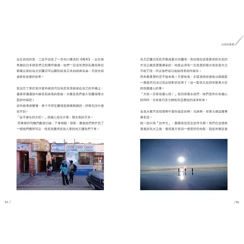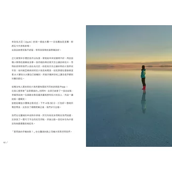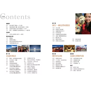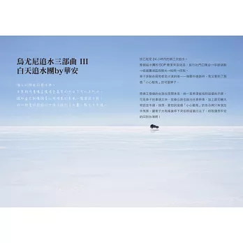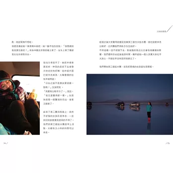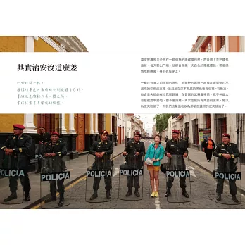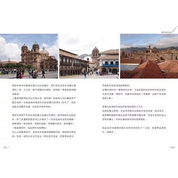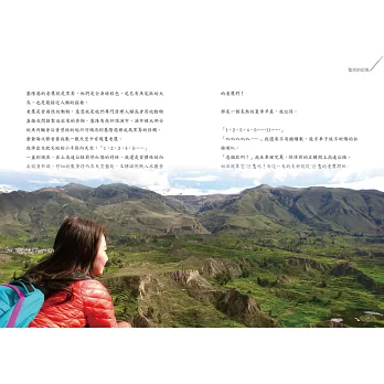 他們在利馬、阿雷基帕、普諾、庫斯科、拉巴斯等城市,寫下一則則精彩故事;著名的科卡峽谷、馬丘比丘、印加聖谷、圓形大梯田、馬拉斯鹽田、人骨教堂、烏尤尼鹽湖等景點,更充滿他們的冒險足跡……