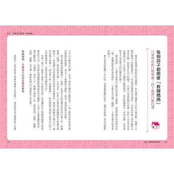 父母是孩子的榜樣,有人生目標與夢想的媽媽,才能讓孩子有積極往前的動力!特別收錄:尋找人生目標的四週計劃,循序漸進引導你在短短四週找到人生目標,與孩子一起向前邁進吧!