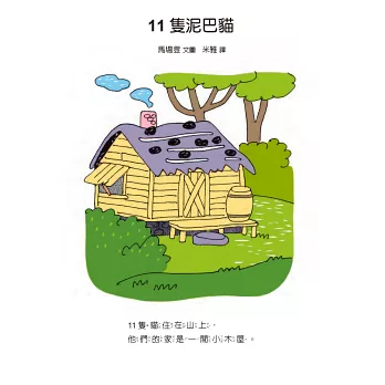 11隻貓邀請豬先生進屋子裡躲雨,決定一起幫豬先生蓋房子,蓋好後,門口立著一塊牌子「11隻貓的家」。