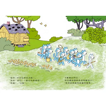 找不到叔叔家的豬先生來到這房子,貓咪們強調「這是11隻貓的家!」不讓豬先生進來,豬先生只好在一旁蓋起木造房子