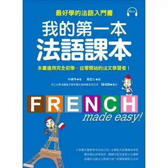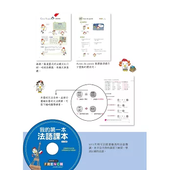 開始學習一種新語言,課本的選擇十分的重要,因為好的課本不但會讓你迅速、穩固地學會基礎的部分,而且還會讓你越學越有興趣,在《我的第一本法語課本》中,初學者可以從發音及字母開始學起,發音的部分,採口型圖輔助講解,且有中文輔助講解如何記下每一個音。接著在基本句型的部分,會先教肯定、否定、疑問等最基礎的重要表達,在熟稔這些表達後,便會進入正課。配合前面紮根的兩項基礎,便可在法語優美的語調中、學習到生活必需的法語會話,以及法語文法。每課中更有精采的法國文化單元,能在學習的同時更加感受到法國的魅力。