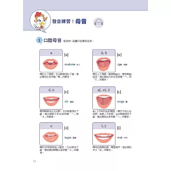 法語的發音模式複雜,跟英文幾乎完全是不同的發音系統。本書一開始用最簡單明瞭的方式解說法語發音,且全書幾乎都標示法文音標,還註明初學者最容易忽略的各類連音符號,搭配mp3,邊看、邊聽、邊唸,一下就學會複雜的法語發音。