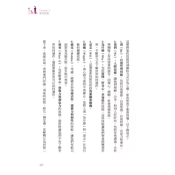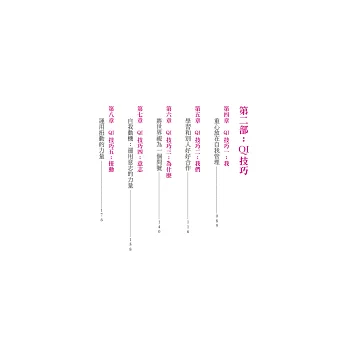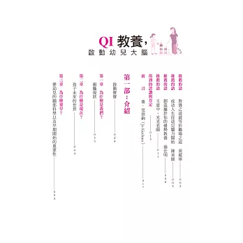 ◎作者從小兒科、神經科學、社會科學及兒童照管領域的研究調查與臨床故事,還有現代商業與創新的世界,教導所有父母如何訓練孩子擁有七個關鍵技能「QI 氣」:自己(Me)、我們(We)、為什麼(Why)、意志(Will)、扭動(Wiggle,是建立於「為什麼」與「意志」之間的行動)、搖晃(Wobble,面對與克服種種問題,以及從錯誤中學習)、如果(What If)。
