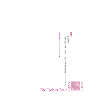 「非常及時又有用!身為小兒科醫師和執行長,我總是在尋找有用的資訊。關於為何、如何和何時協助孩子發揮最高潛能,這是截至目前我看過最好的一本書。本書提到的洞見和QI技巧雖然對幼兒很有效,但是無疑也會造福各個年紀的兒童(以及成人)!」——傑夫.湯姆遜(Jeff Thompson),小兒科醫師、鋼德森健康系統(Gundersen Health System)榮譽執行長