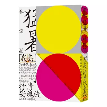 《猛暑》從當代台灣政治看到崩壞之必然,讓人心有戚戚焉。林俊頴以最繁複華麗的文字描寫「我島人」的一頁消長過程,它促使我們思考台灣文學當代性的另一層面。我們能容忍一本砲口向内的惡托邦(Dystopia)預言小説麽?小説虛構和政治現實的底線是什麽?《猛暑》以另一種形式看見台灣,而我們又該如何看見《猛暑》——林俊穎一個人的前瞻計畫?