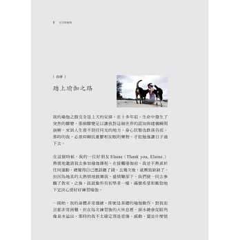 在這個時候,我的一位好朋友Elaine(Thank you, Elaine.)熱情地邀請我去參加瑜伽課程。在接觸瑜伽前,我並不熱衷於任何運動,總覺得自己應該繳了錢,去幾次後,就興致缺缺了。但因為她真的太熱情地鼓舞我,盛情難卻下,我們便一同去參觀了教室,之後,我就像所有初學者一樣,滿懷希望和衝勁地下定決心要好好練習瑜伽。