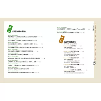 本書便是因應這股趨勢變化,由數位行銷專門雜誌《日經數位行銷》企畫、編輯而成。無論是想從基礎開始學習數位行銷的人,或是已經投身數位行銷產業的人,本書為了讓更多人有收穫,下了許多工夫。請大家慢慢享受這個深奧的世界。