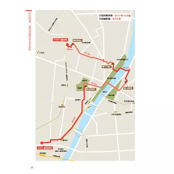 一個主題,規劃5~6間神社,標示出路線距離、所需步行時間(預估值)。