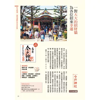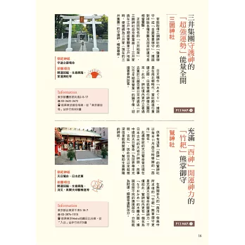 ◆除了路線規畫外,還網羅東京境內各區及鄰近地區(神奈川/千葉)的同類知名神社。