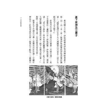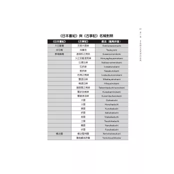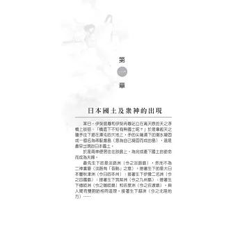 本書的主題是神話,雖也想過撰寫較為著名的民間傳說如浦島太郎、酒吞童子、桃太郎、三保羽衣等傳說,但因作者的專攻是歷史,對於民間傳說和神話只是出於興趣,手邊的相關書籍非常有限,和編輯討論後最終決定割捨民間傳說的部分,只專就神話的部分。作者在大學期間曾在學校圖書館讀過時報出版由王孝廉先生編譯的《島國春秋――日本書紀》(該書已絕版)以及張文朝先生翻譯並自費出版的《古事記》,這兩書對本書的完成助益非常大,作者在此致上對兩位先生的謝意。