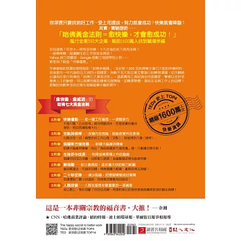 3.任何想要在愈來愈緊張忙碌的職場上獲得成功的人,都應該看看本書。不只告訴我們如何變得更快樂,也教導我們從樂觀積極的心態中獲益,擁有成功的事業及生活。