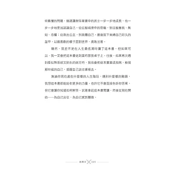 ▎往後,遇到看似熟悉卻又陌生的迷茫時,我會把這本書當成指南,提醒自己該往哪裡去。──艾爾文(勵志作家)