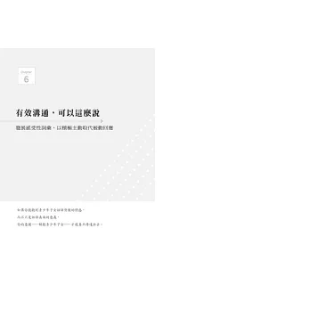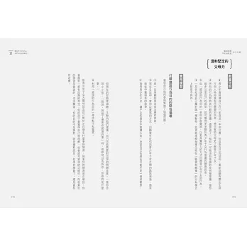 5.每一章最後都有「溫和堅定的父母力」專欄──提供「教養守則」及「實用練習」,整理該篇章的實踐重點,給予父母明確的指引。