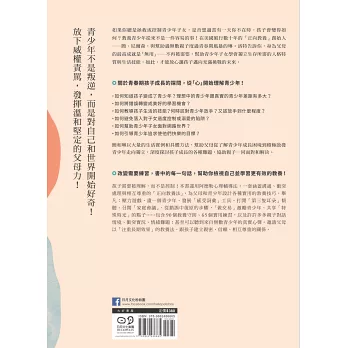 「這是一本豐富紮實的好書,內容涵蓋豐富的心理學知識與實用的教養方法,幫助家有青少年的父母學會在溫和堅定中延續對孩子的愛與責任、享受日漸放手的輕鬆自在,也讓更多青少年得以間接受惠,在跨越青春期的種種挑戰之後,成為真實、夠好的自己。」──楊俐容/兒童青少年心理專家