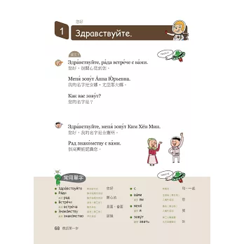 語言就是要實用,如果和現實脫節就很難學得好!不論你到俄語區是為了旅遊、留學、洽公或是久住,本書都能陪著你透過最常見的場景和最簡單卻最好用的萬用短句下手,讓你的俄語和生活緊緊相依,一步一步解密最神祕的俄語!